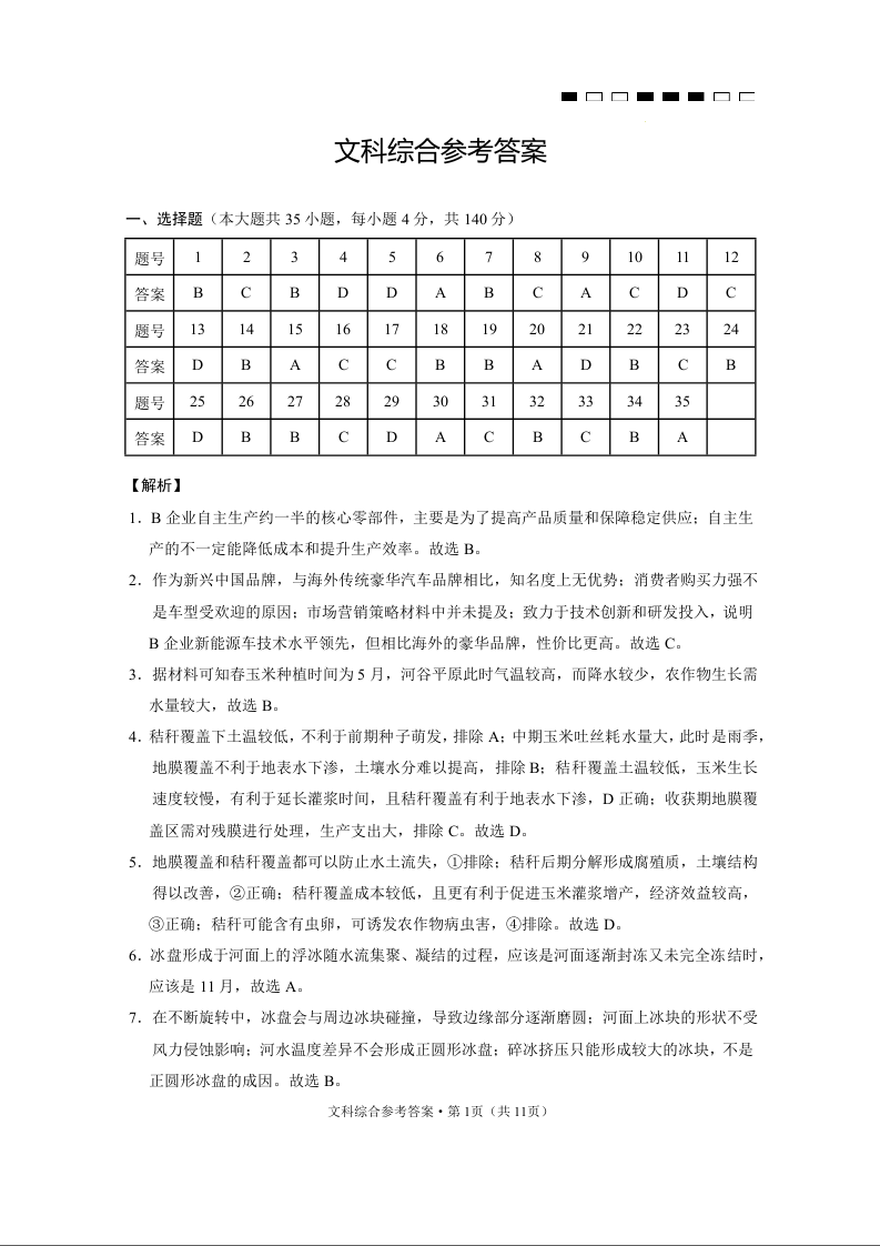 云南师范大学附属中学2024届高三下学期高考适应性月考卷(九)文综答案