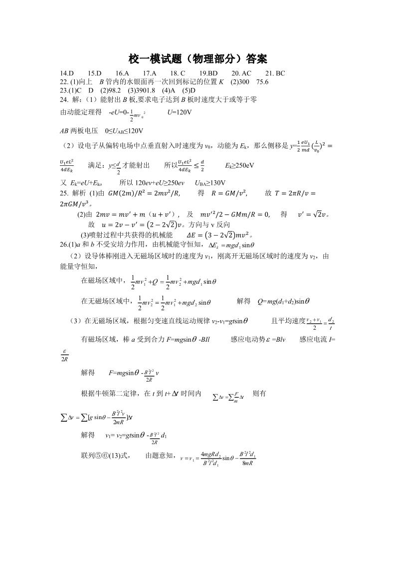 山西省太原市第五中学2024届高三下学期一模理综答案
