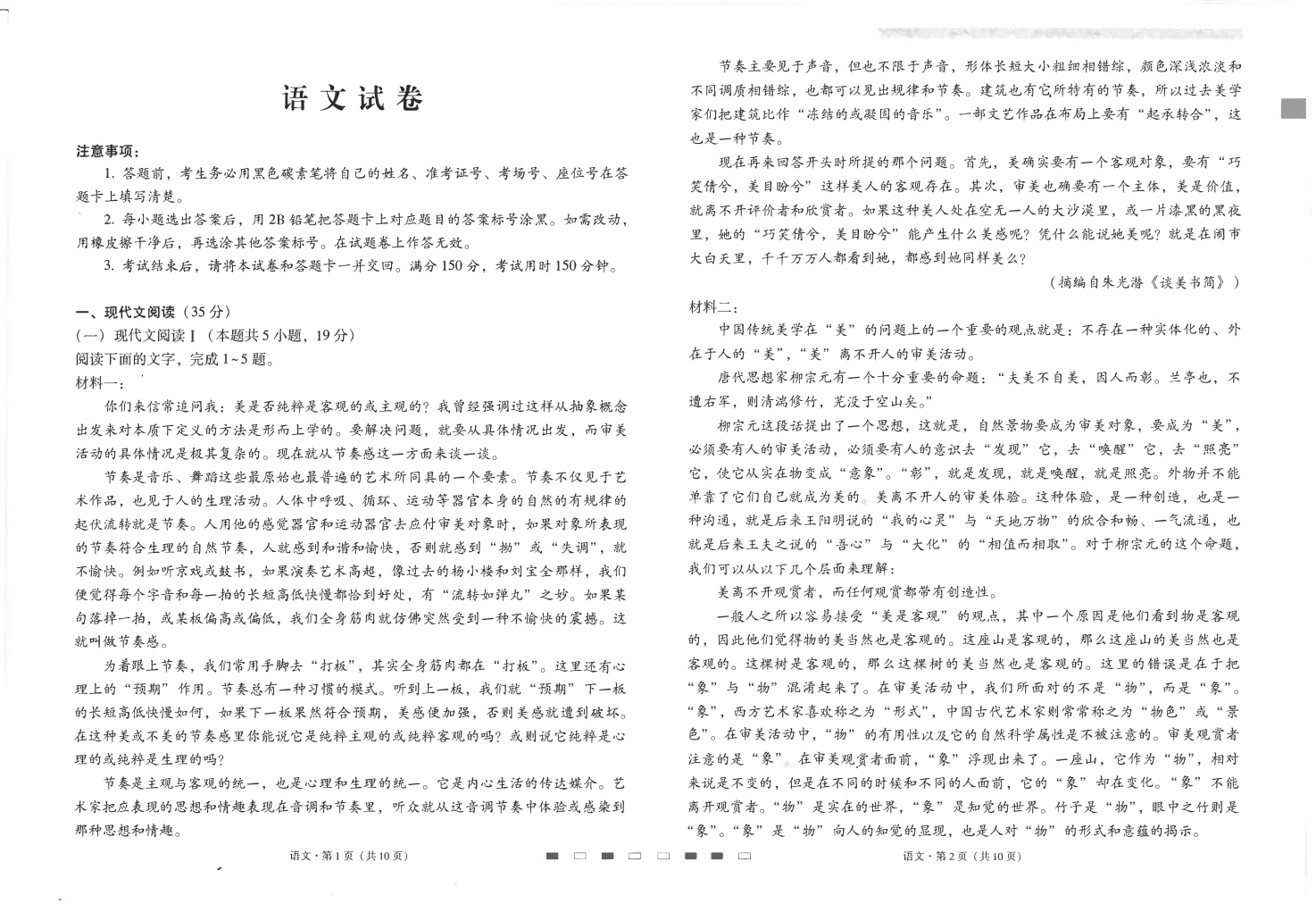 云南省云南师范大学附属中学2024届高三上学期高考适应性月考卷(四)语文