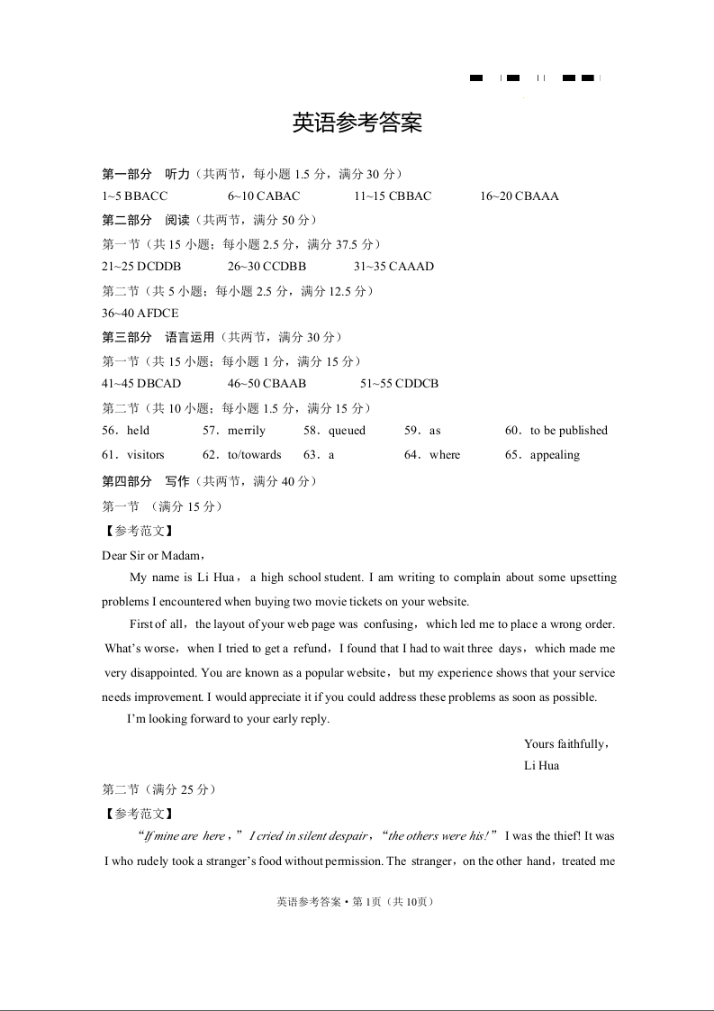 云南省云南师范大学附属中学2024届高三上学期高考适应性月考卷(四)英语答案