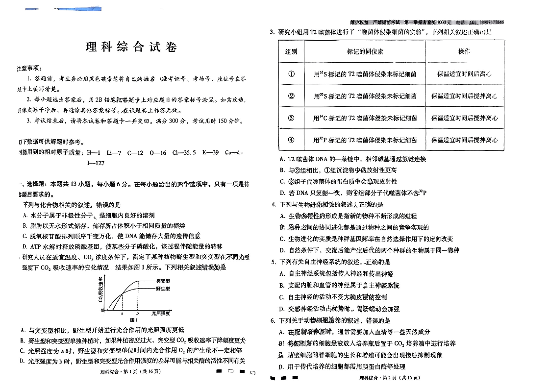 云南省云南师范大学附属中学2024届高三上学期高考适应性月考卷(四)理综