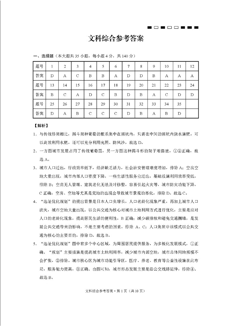 云南省云南师范大学附属中学2024届高三上学期高考适应性月考卷(四)文综答案