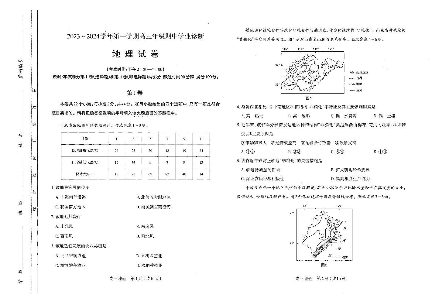山西省太原市2024届高三上学期期中学业诊断地理