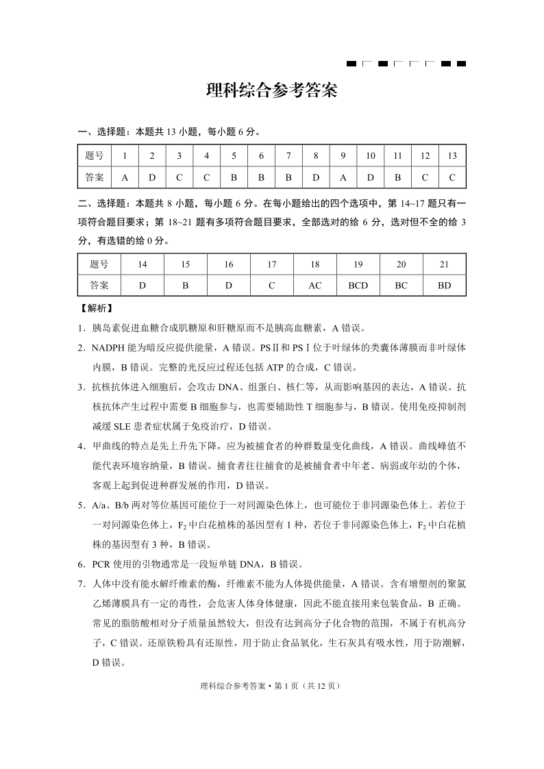 云南师范大学附属中学2024届高三上学期高考适应性月考卷(六)理科综合答案