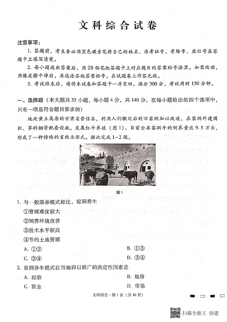云南师范大学附属中学2024届高三上学期高考适应性月考卷(六)文科综合