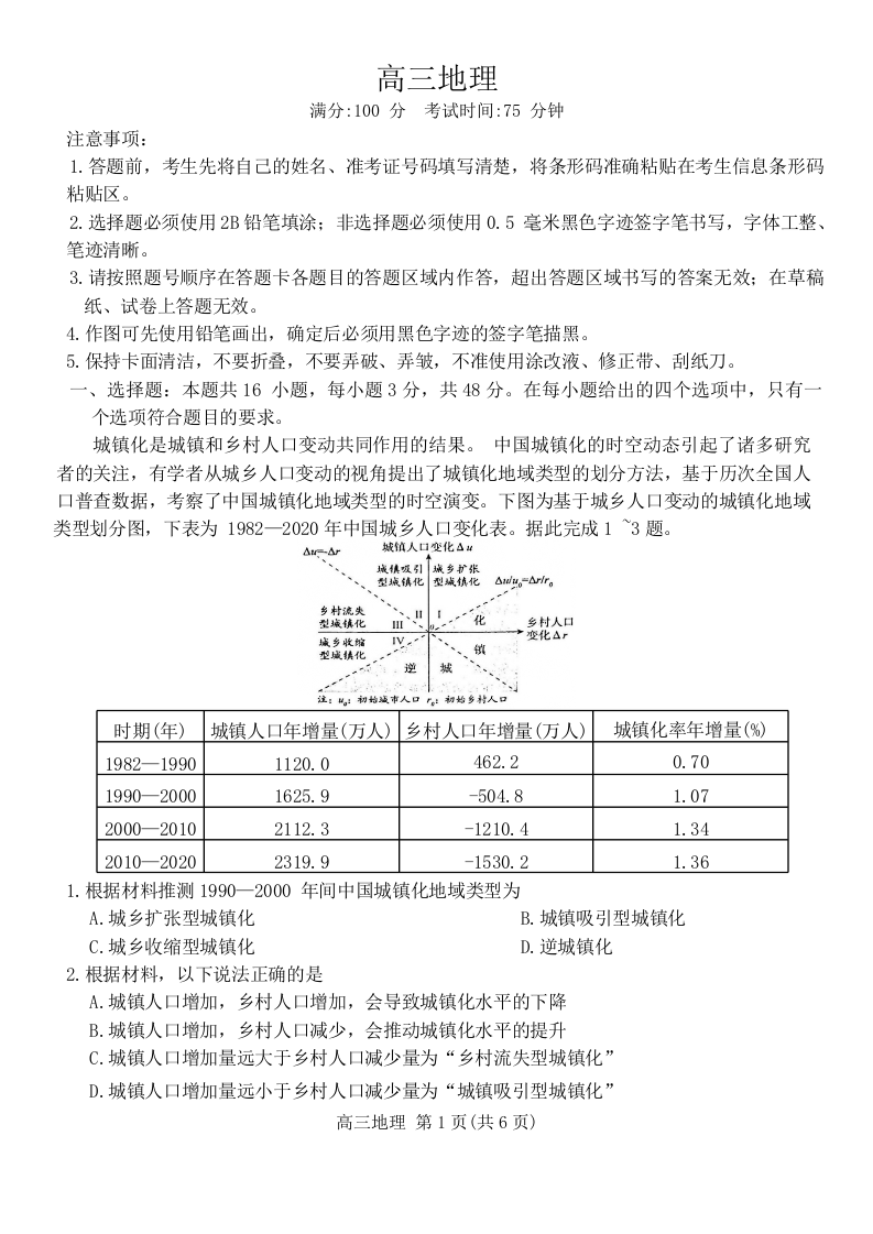 安徽省池州市2024届高三上学期1月期末考试地理