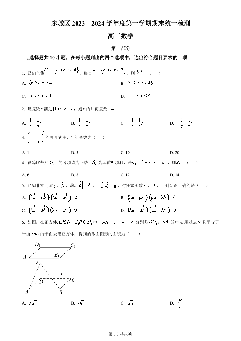 北京市东城区2024届高三上学期期末统一检测数学(原卷版)