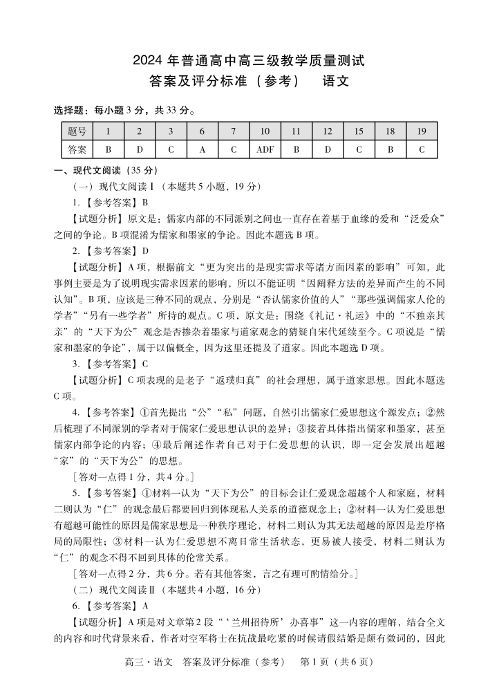 广东省揭阳市汕尾市2024届高三上学期1月期末考试语文答案