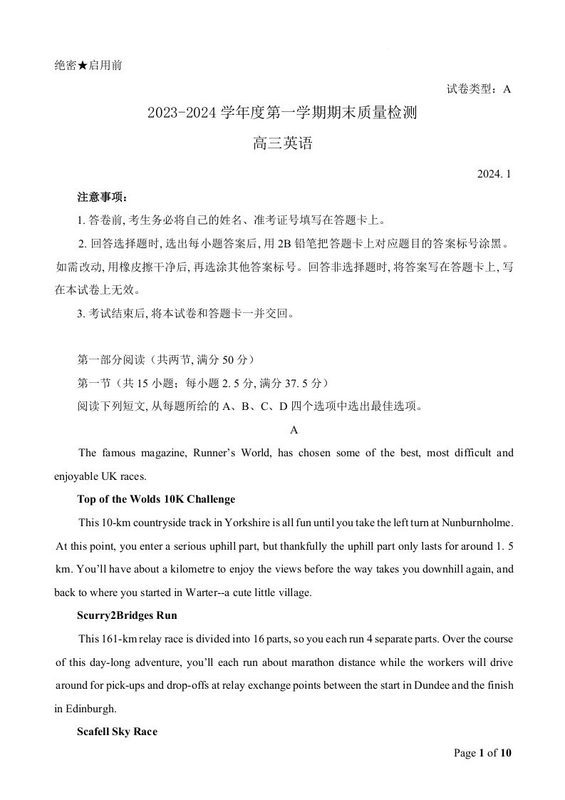 广东省深圳市罗湖区2024届高三上学期期末质量监测英语