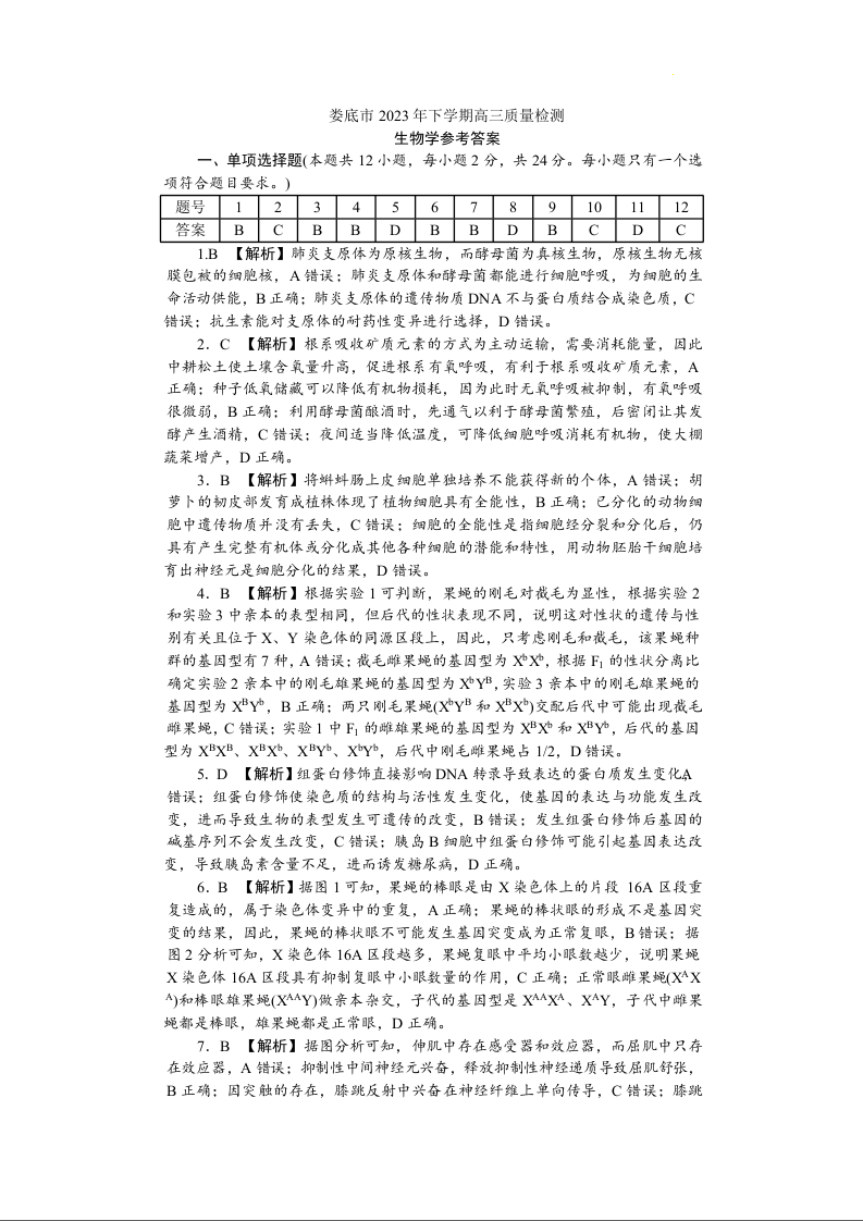 湖南省娄底市2024届高三上学期期末考试生物答案