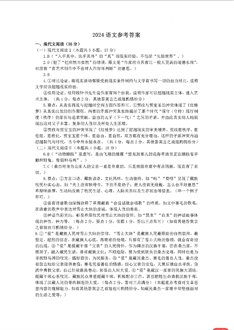 湖南省株洲市2024届高三上学期教学质量统一检测(一)语文答案