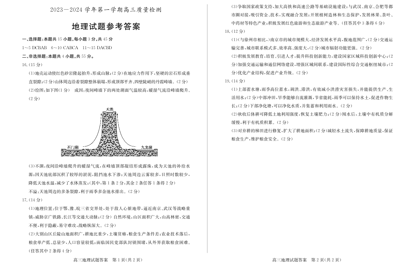 山东省枣庄市2024届高三上学期1月期末质量检测地理答案