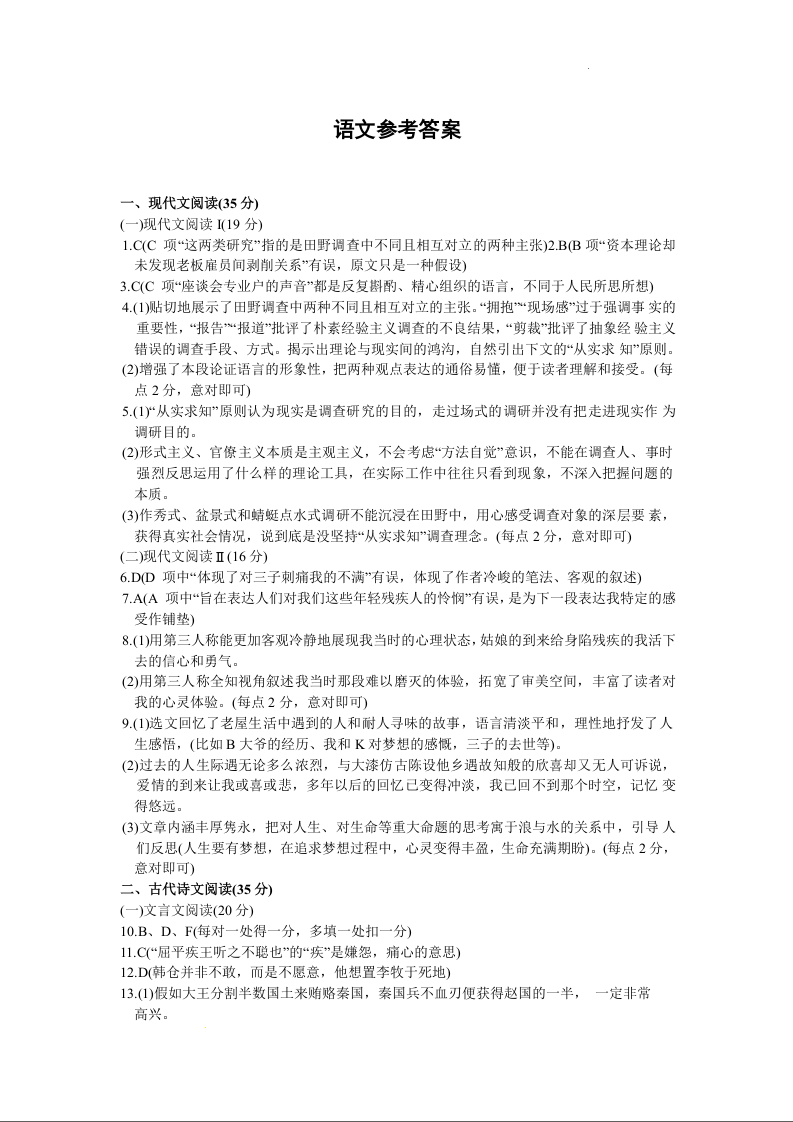 山东省枣庄市2024届高三上学期期末考试试题语文答案
