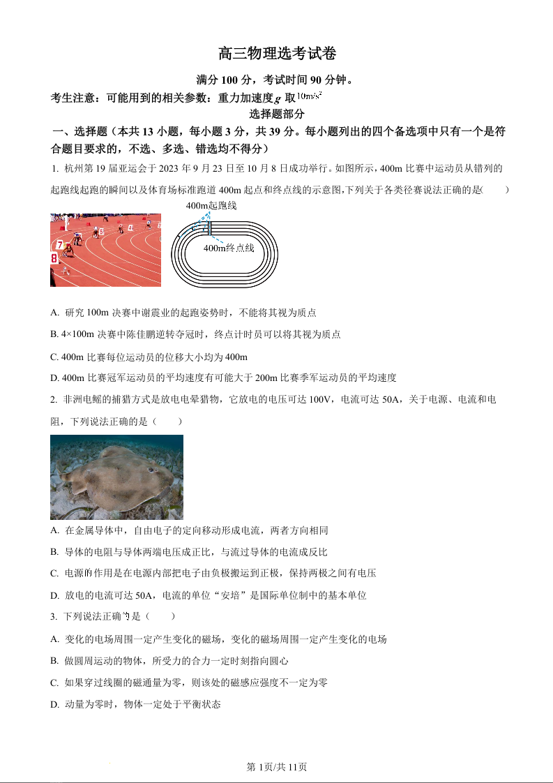 浙江省宁波市镇海中学2024届高三12月首考模拟物理(原卷版)