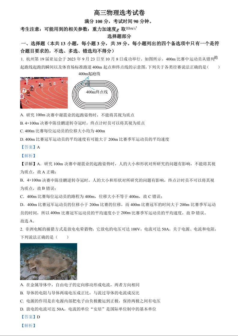 浙江省宁波市镇海中学2024届高三12月首考模拟物理(精品解析版)