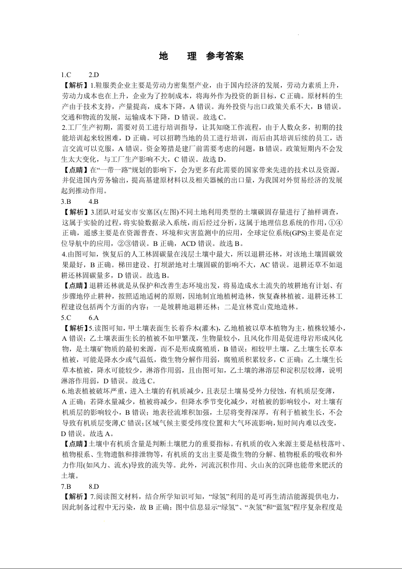浙江省宁波市镇海中学2024届高三12月首考模拟地理答案