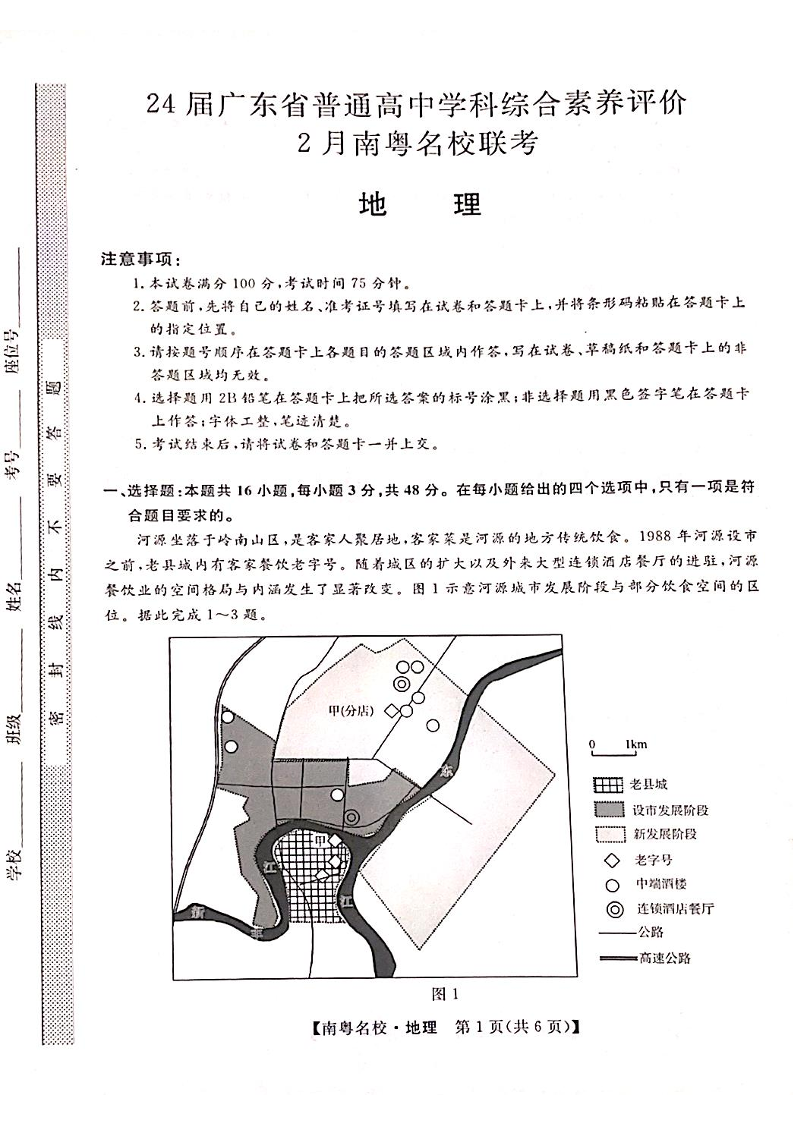 广东省南粤名校2024届高三下学期2月联考地理