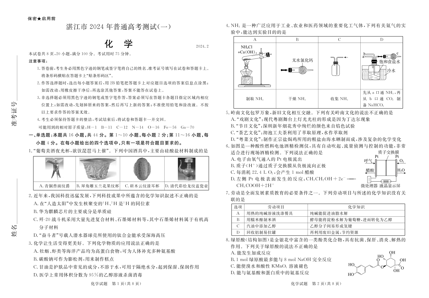 广东省湛江市2024届普通高考第一次模拟考试(湛江一模)化学