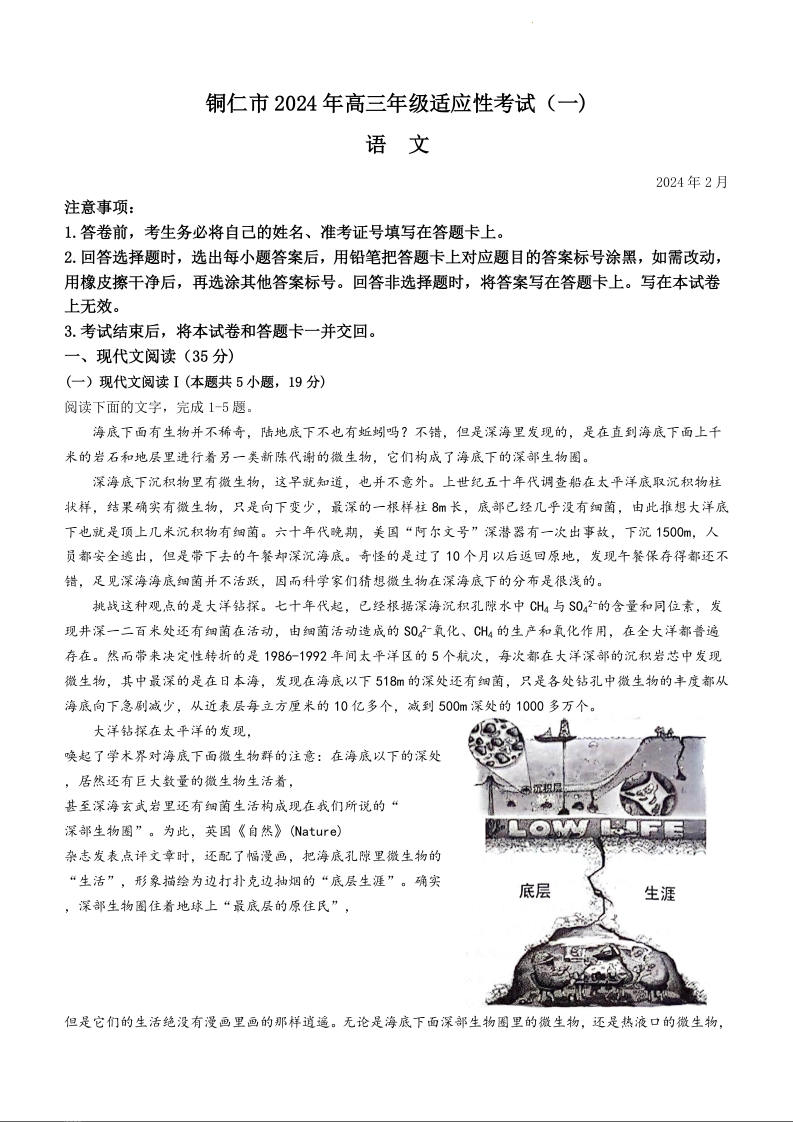 贵州省贵阳市2024届高三年级适应性考试(一)语文