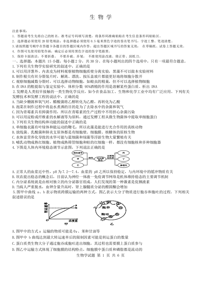 黑龙江省六校联盟2024届高三下学期联合性适应测试生物