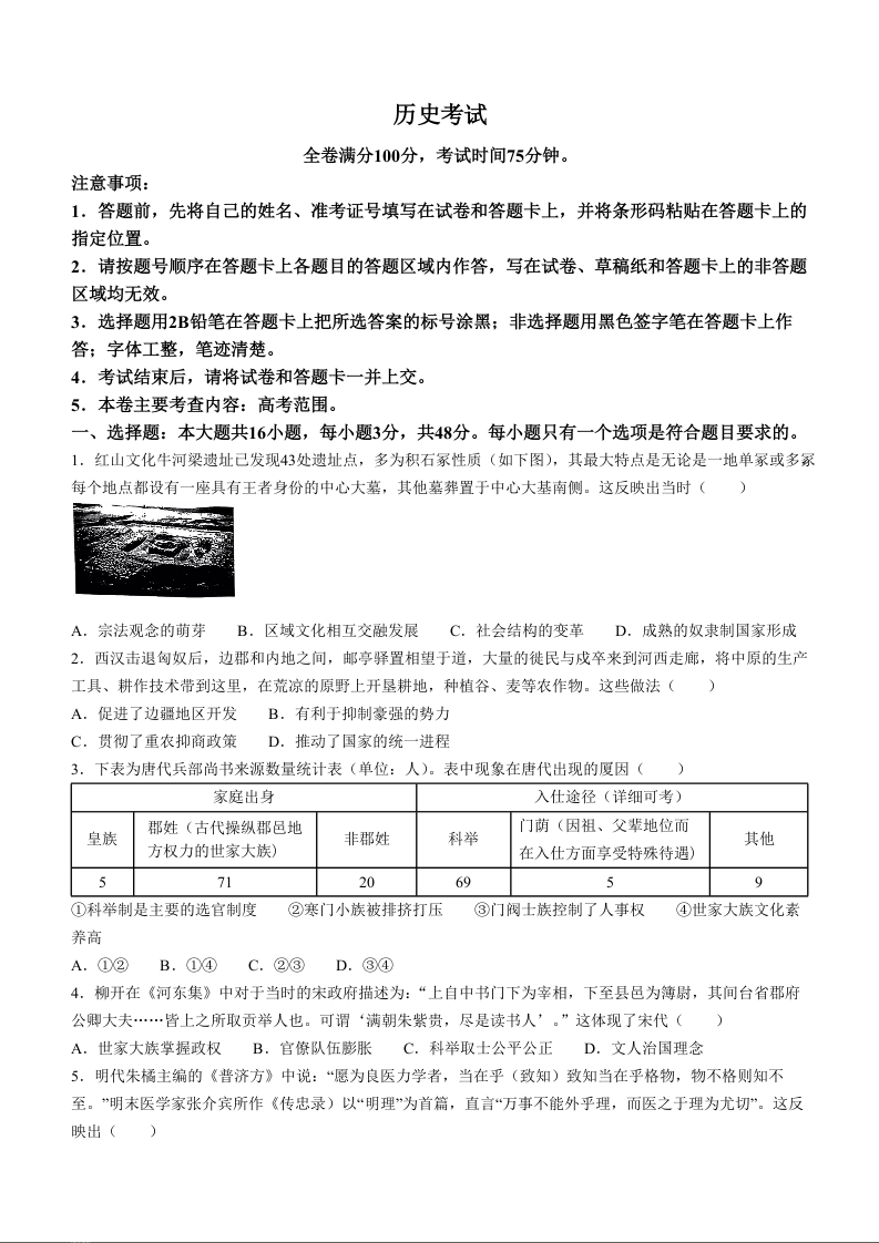 黑龙江省齐齐哈尔市2024届高三下学期一模历史+答案