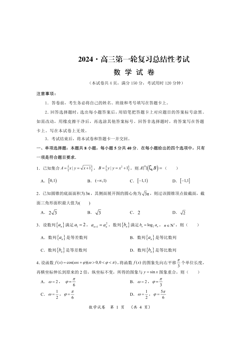 湖南省2024届高三下学期一轮复习总结性考试数学