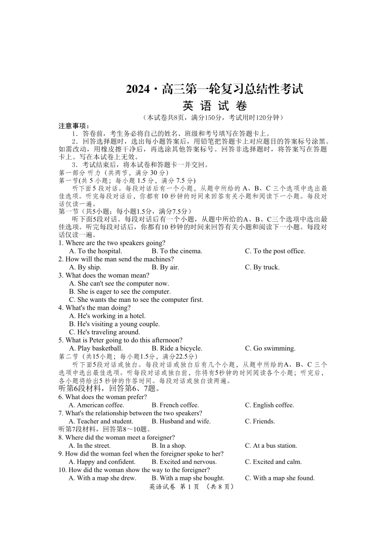 湖南省2024届高三下学期一轮复习总结性考试英语