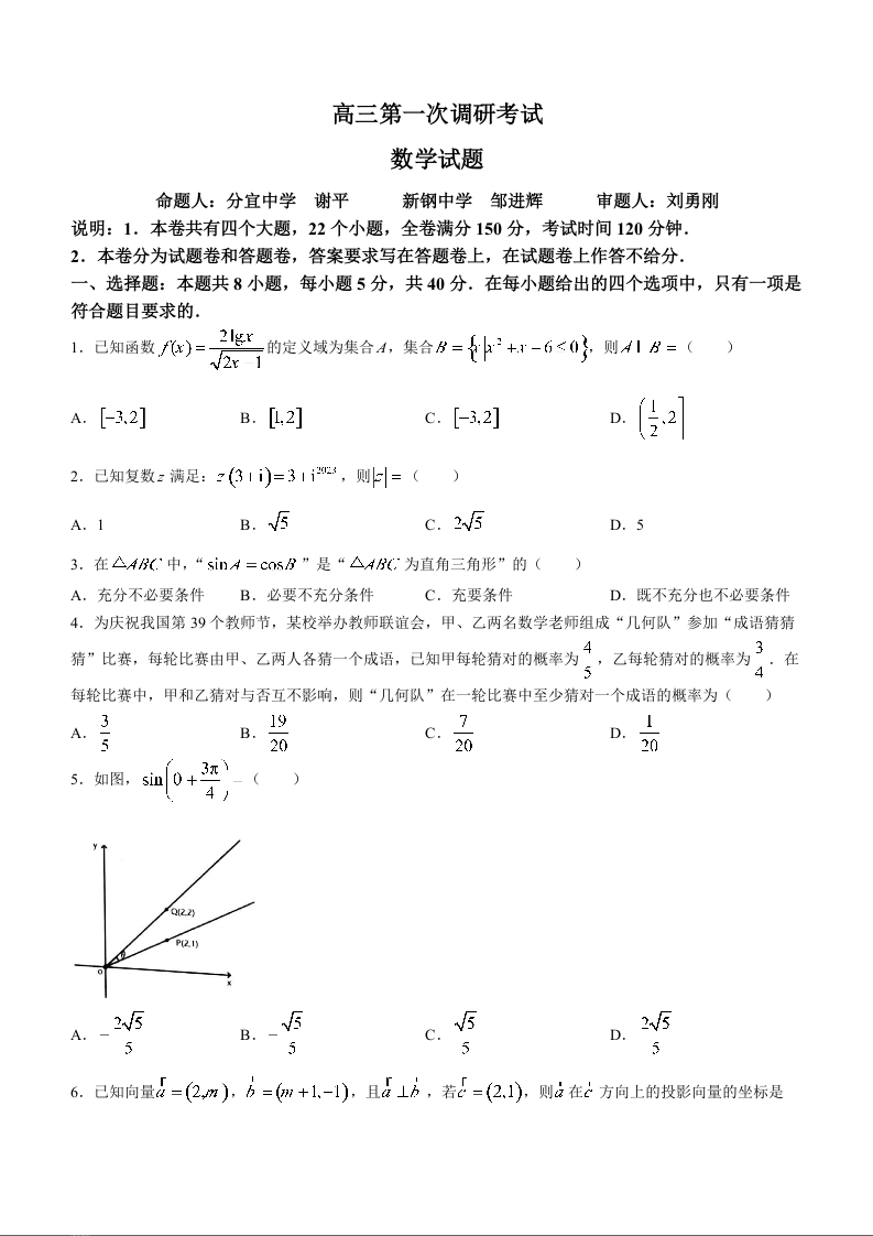 江西省新余市2024届高三上学期期末质量检测数学+答案