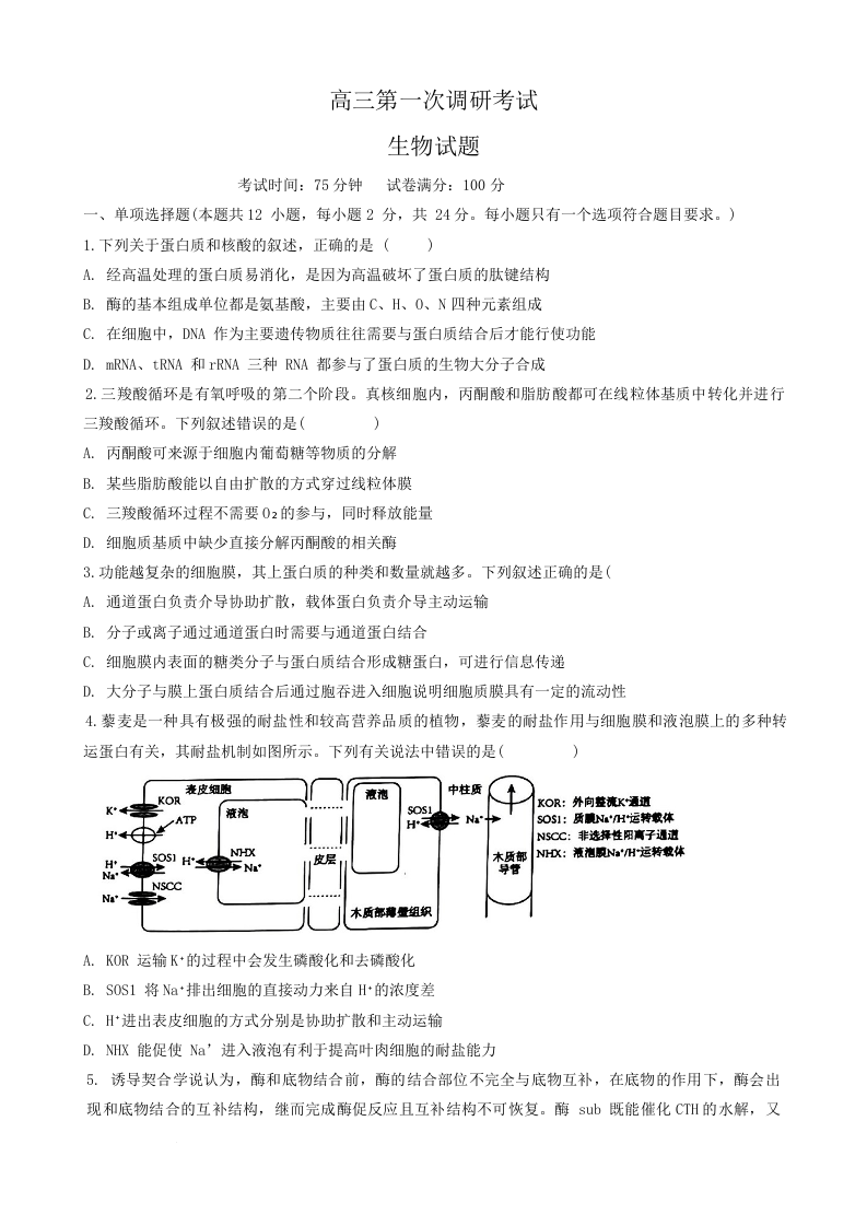 江西省新余市2024届高三上学期期末质量检测生物+答案