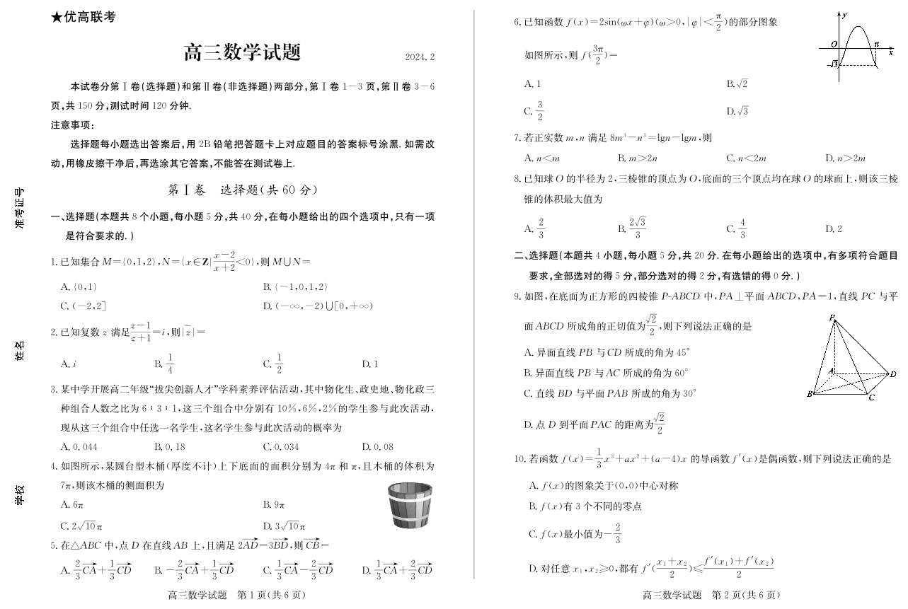 山东省德州市“优高联盟”2024届高三2月诊断性检测数学