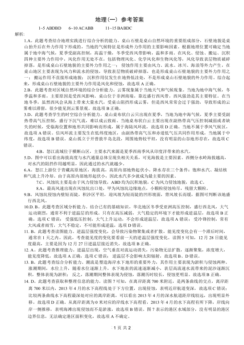 重庆康德2024年普通高等学校招生全国统一考试高考模拟调研卷(一)地理答案