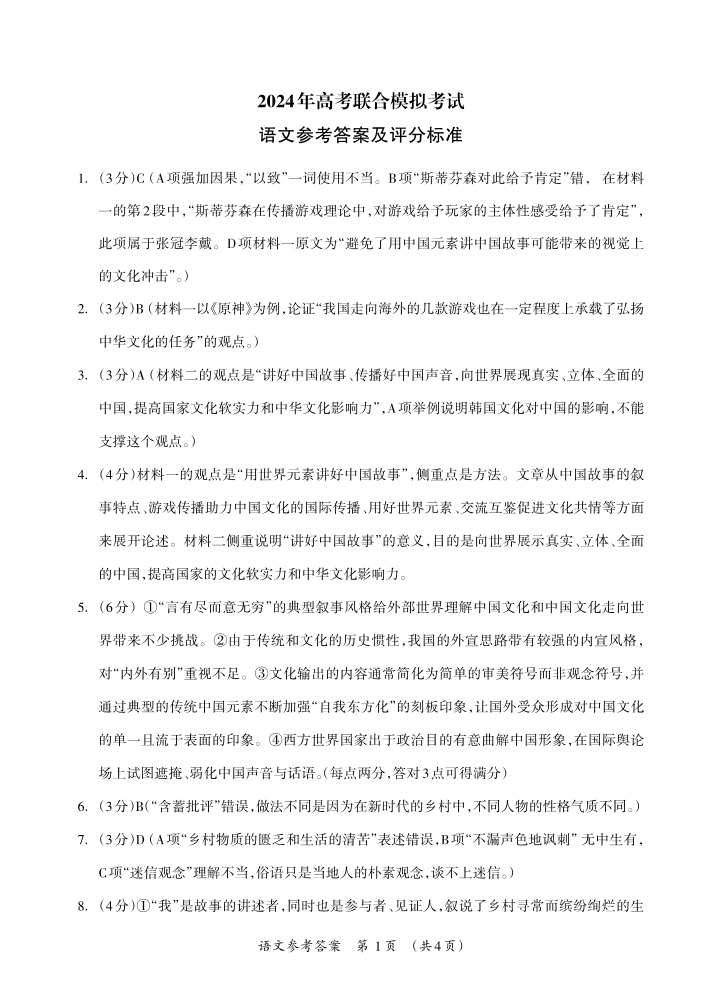 广西壮族自治区2024届高三3月联合模拟考试语文答案