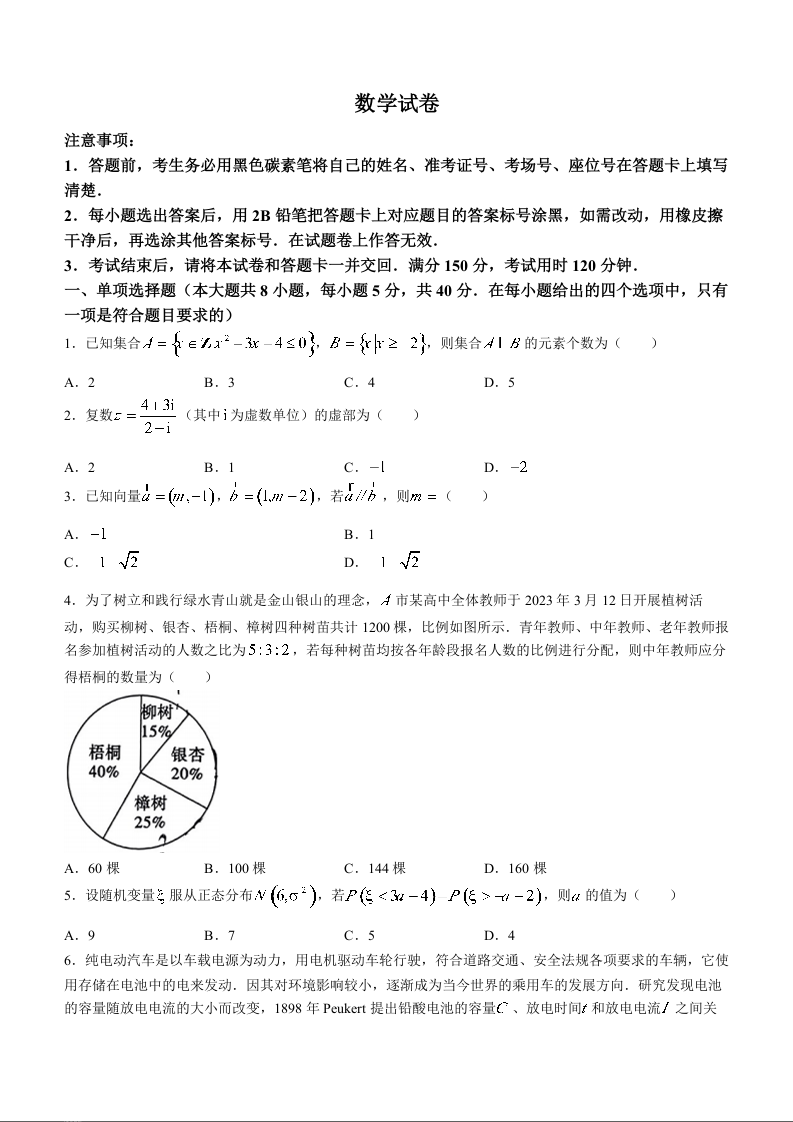 贵州省贵阳市第一中学2024届高三下学期一模考试数学