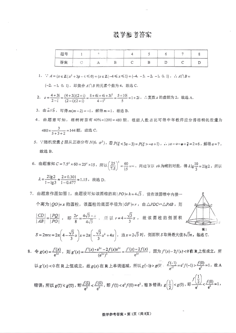 贵州省贵阳市第一中学2024届高三下学期一模考试数学答案