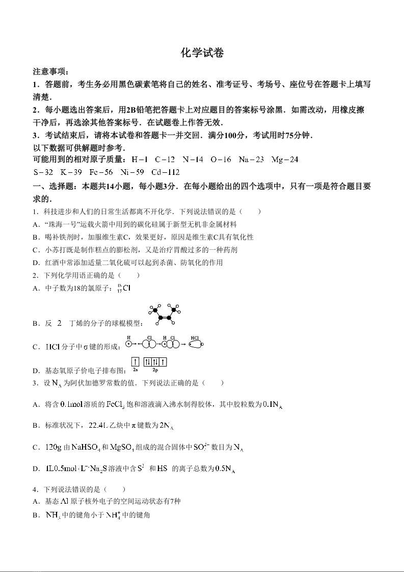 贵州省贵阳市第一中学2024届高三下学期一模考试化学