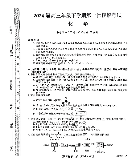 河北省金科大联考2024届高三下学期3月质量检测化学