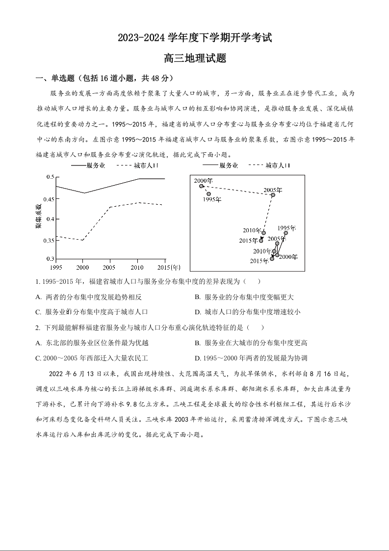 黑龙江省大庆市大庆中学2024届高三下学期开学考试地理(原卷版)