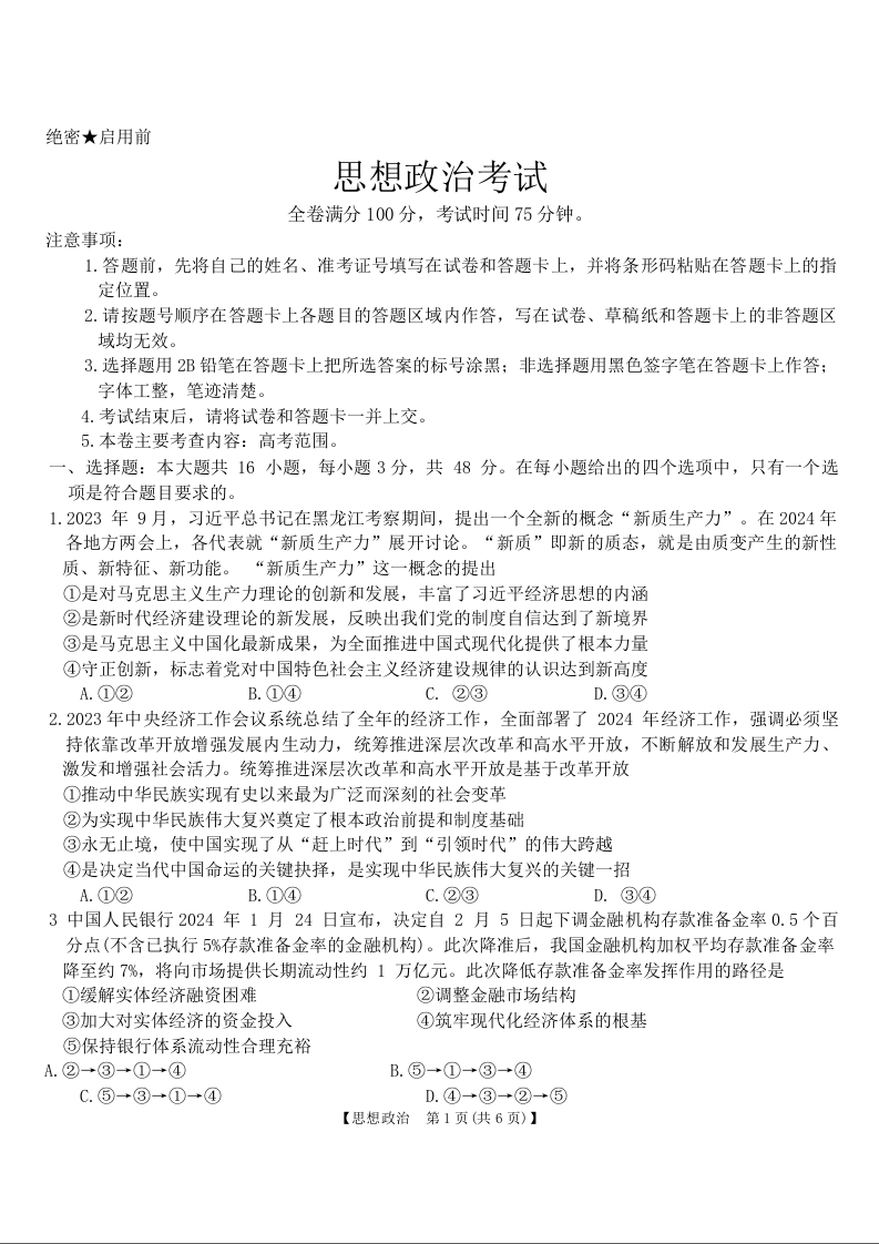 黑龙江省齐齐哈尔市2024届高三下学期二模考试政治