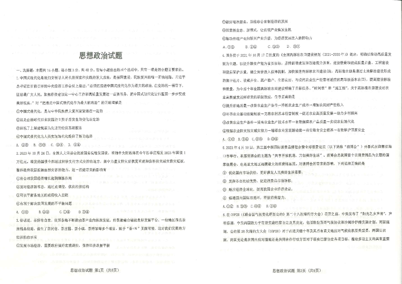 湖北省十一校2024届高三下学期第二次联考政治