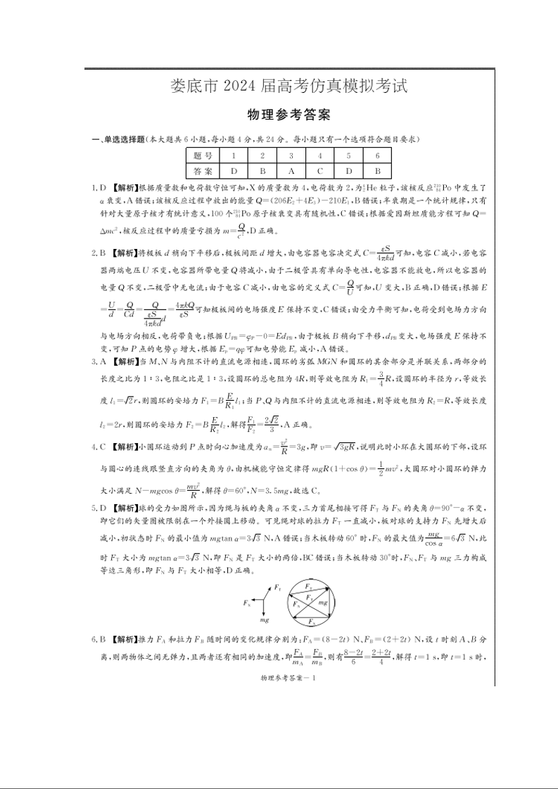 湖南省娄底市2024届高三下学期仿真模拟考试(娄底三模)物理答案