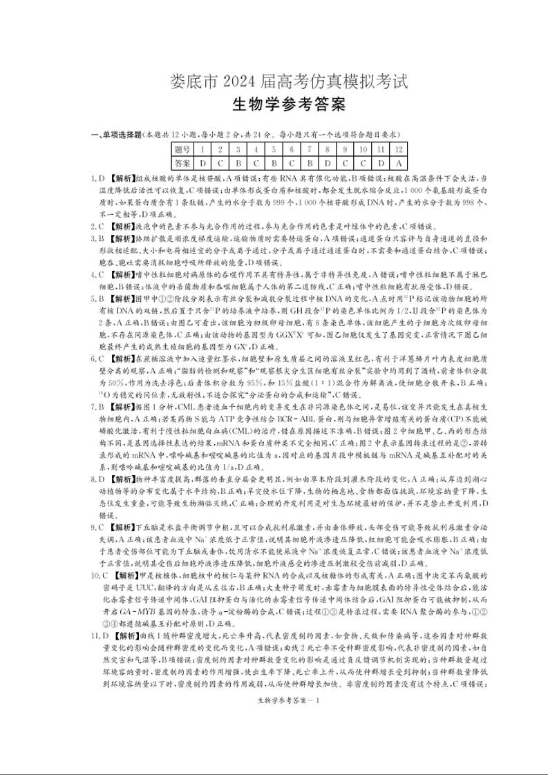 湖南省娄底市2024届高三下学期仿真模拟考试(娄底三模)生物答案