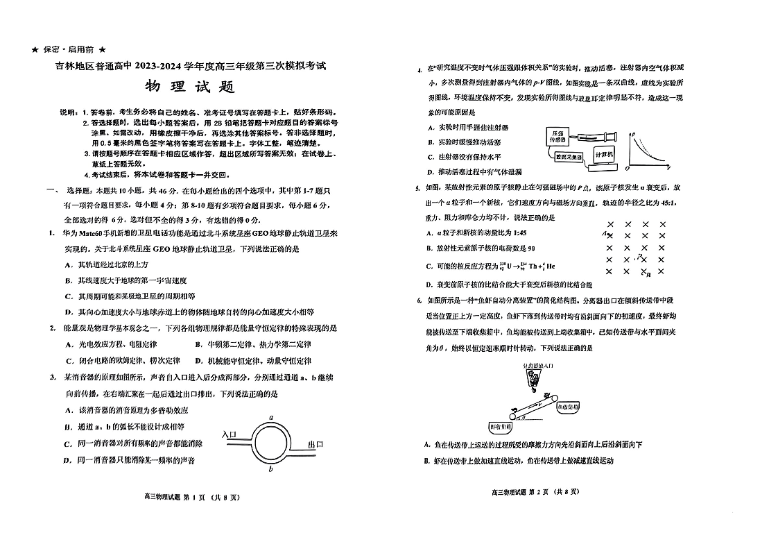 2024届吉林省吉林地区普通高中高三三模考试物理+答案