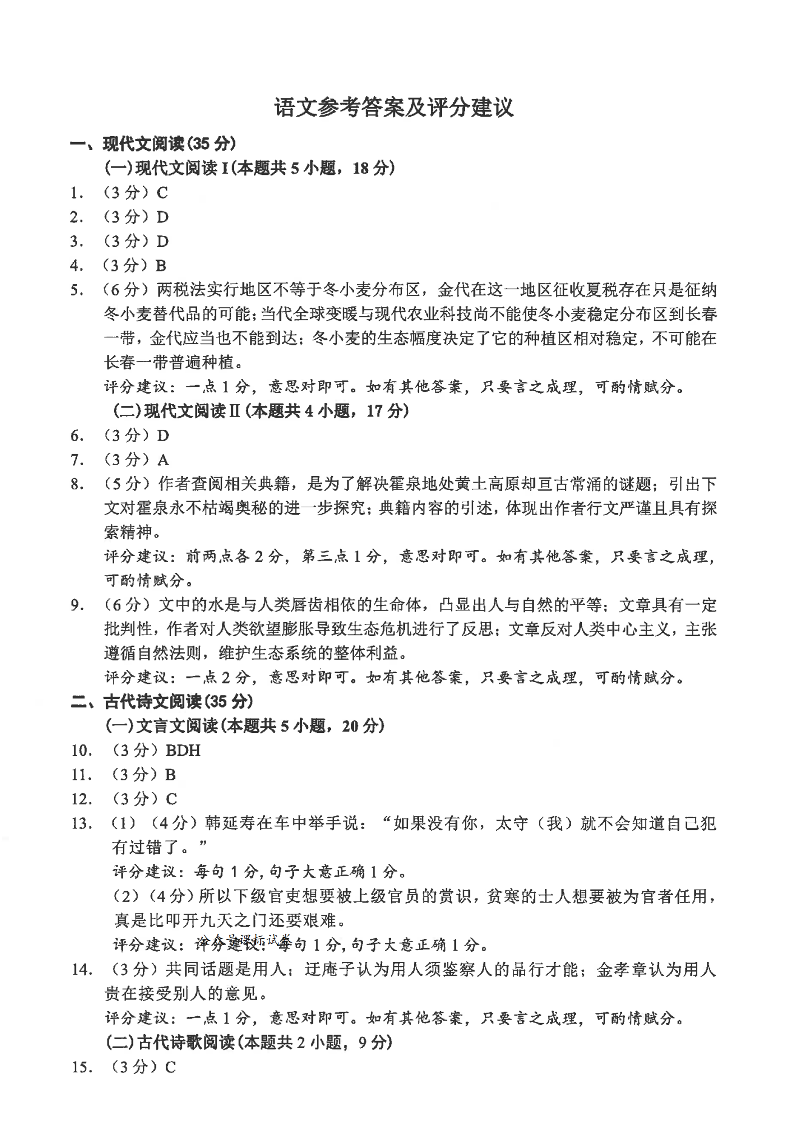 江苏省南通市海安市2024届高三上学期期初学业质量监测语文答案