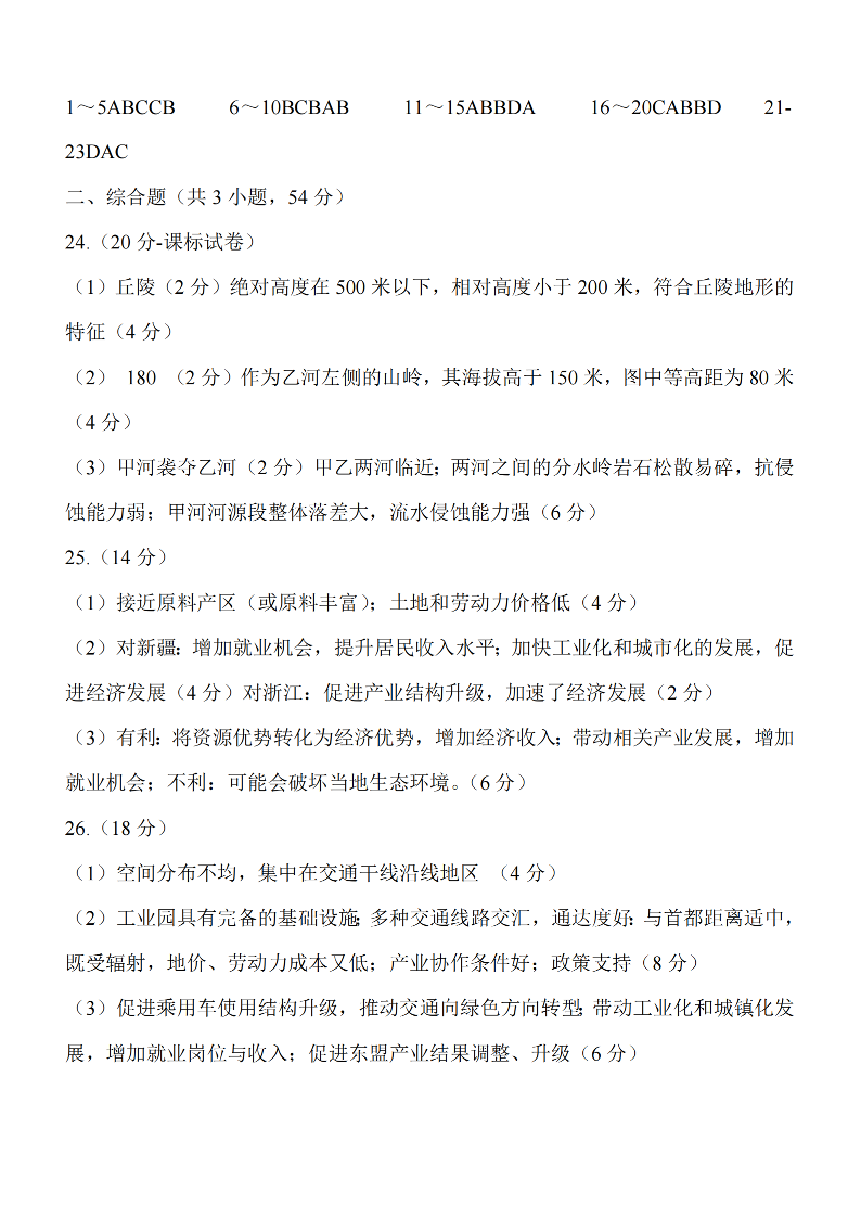 江苏省南通市海安市2024届高三上学期期初学业质量监测地理答案