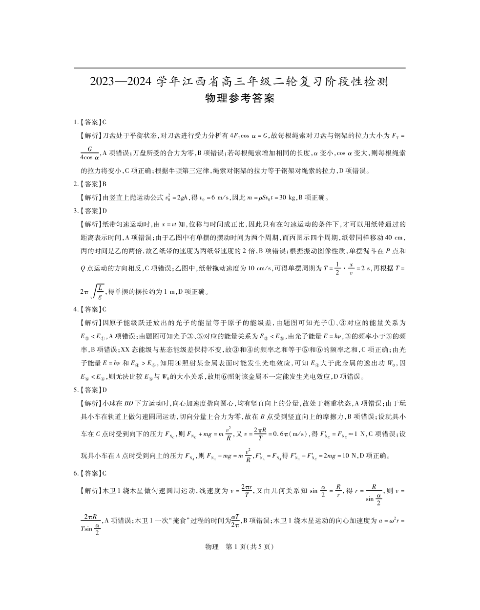 江西稳派上进联考2024届高三年级二轮复习阶段性测试物理答案