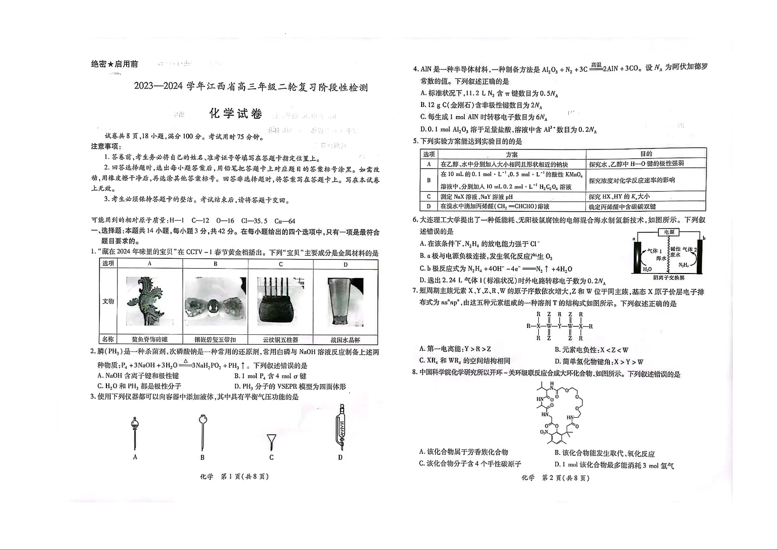 江西稳派上进联考2024届高三年级二轮复习阶段性测试化学
