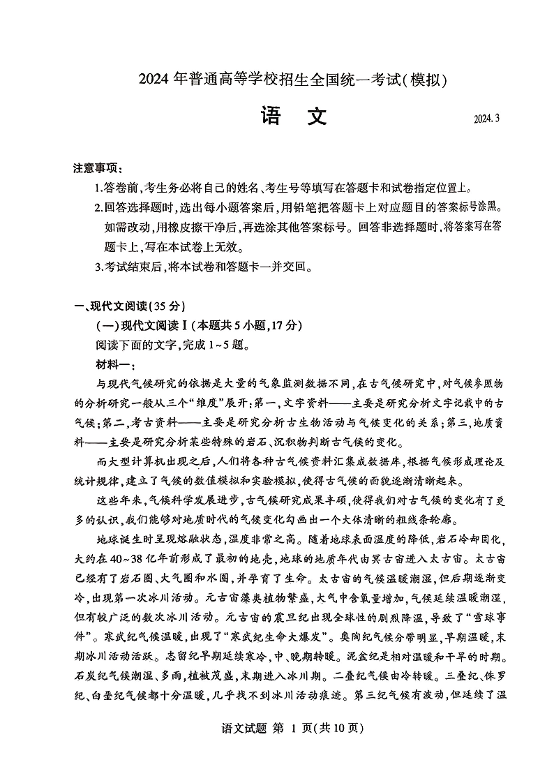 山东省临沂市2024届高三下学期3月一模考试语文+答案