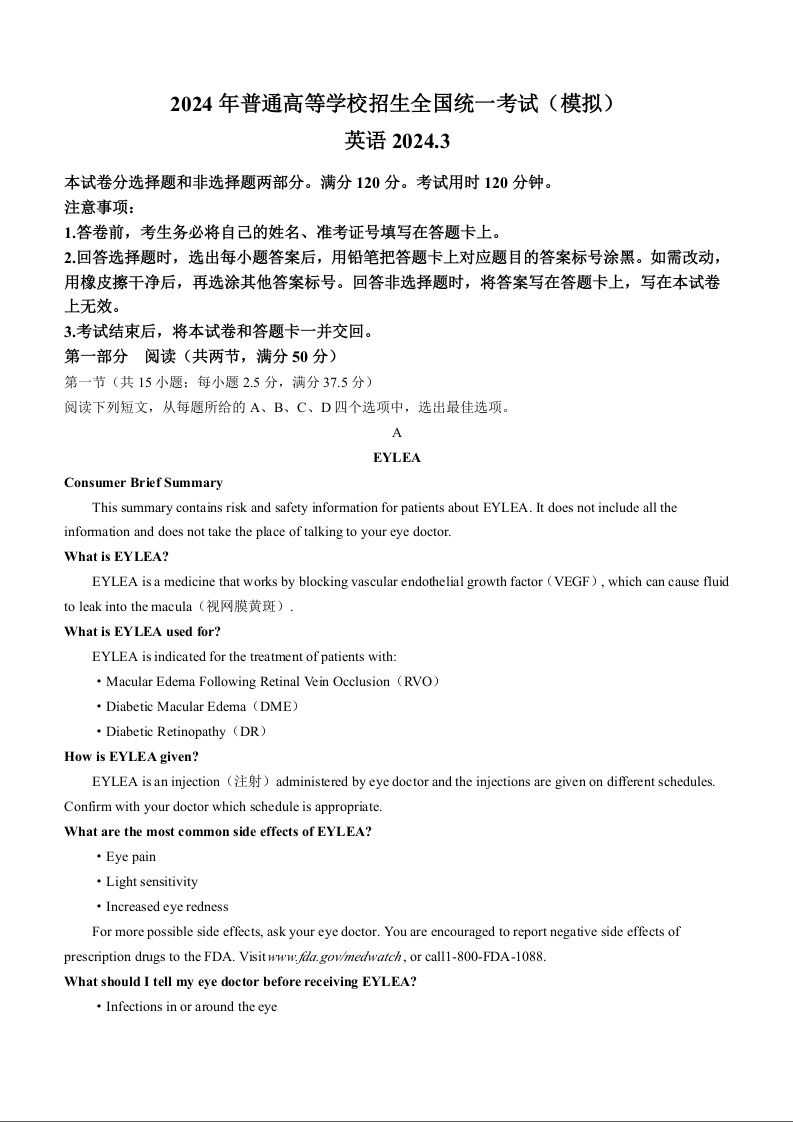 山东省临沂市2024届高三下学期3月一模考试英语+答案