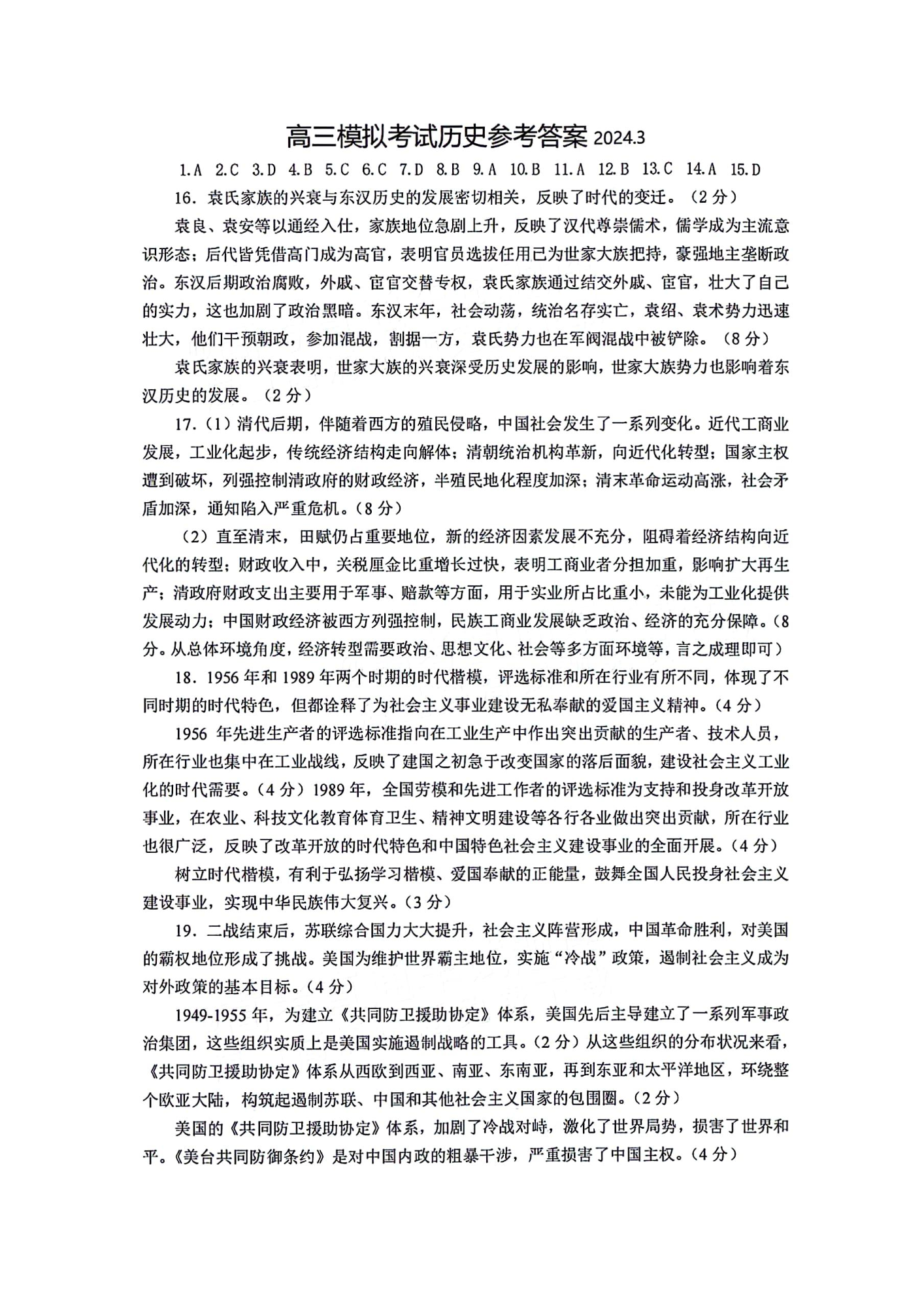 山东省日照市2024届校际联合考试高三一模(2月)历史答案