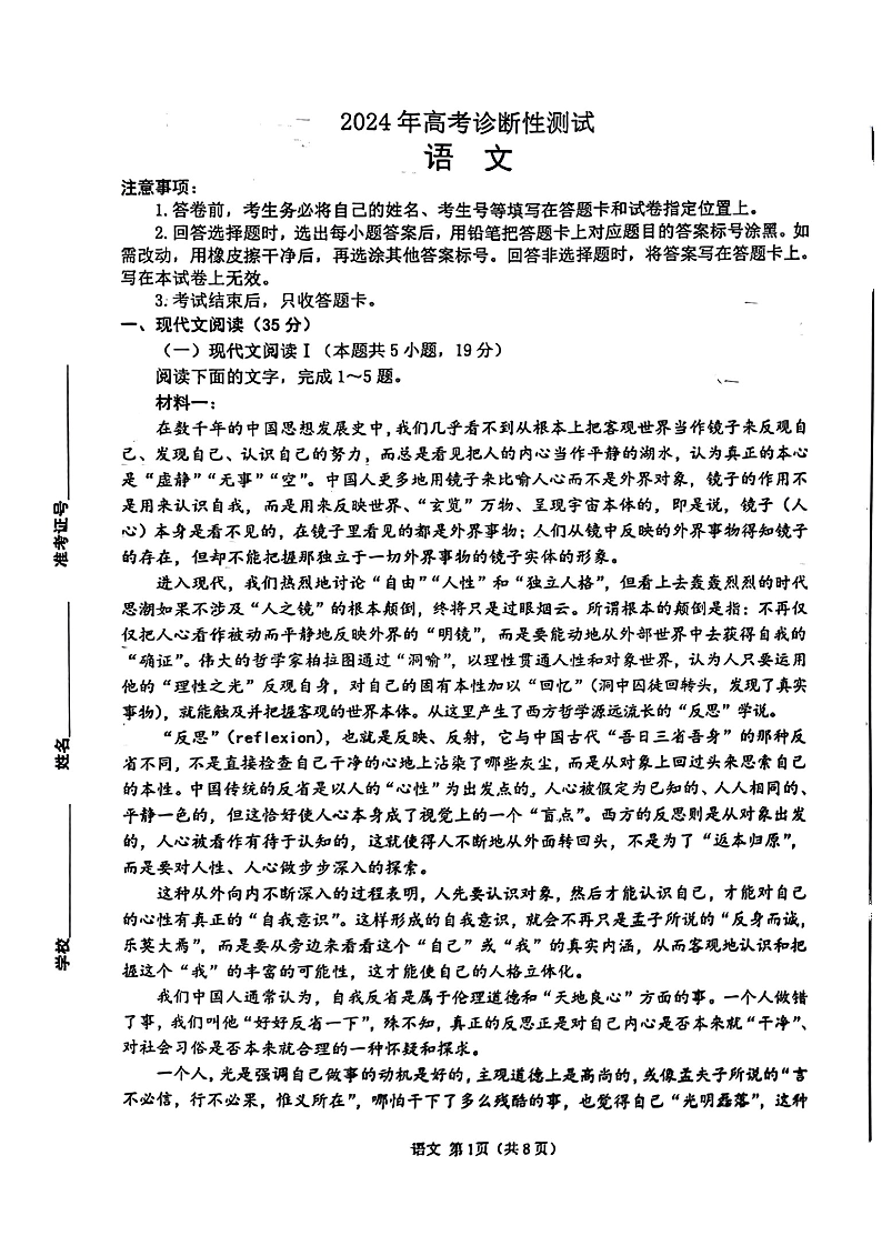 山东省烟台德州东营2024年高考诊断性测试(一模)语文